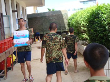 2008年7月18日,新味公司總經(jīng)理黃細(xì)忠與公司數(shù)名員工走訪霞莆某駐軍部隊(duì),并攜帶價(jià)值1萬元人民幣的新味公司生產(chǎn)的新味牌純凈水和糕點(diǎn)用于改善該駐軍部隊(duì)官兵的生活。向仍在夏日的烈日下操作的全體部隊(duì)官兵致以親切的慰問和崇高的敬意。瑾代表新味公司對(duì)祖國部隊(duì)的擁護(hù),對(duì)部隊(duì)官兵的關(guān)心,感謝部隊(duì)對(duì)社會(huì)做出的貢獻(xiàn)。