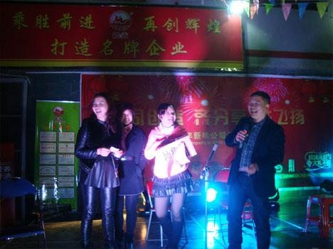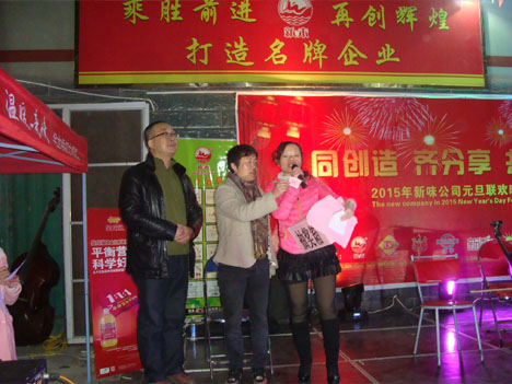 不知不覺又度過了蓬勃發(fā)展的一年,喜悅伴著汗水,成功伴著艱辛,告別激情的2014,迎接嶄新的2015。新年來臨之際,我司聯(lián)合東升、環(huán)宇、新品香、金太陽、許寶洋、易時(shí)代于12月31日晚在本公司舉行以“同創(chuàng)造 齊分享 共飛揚(yáng)”為主題的元旦聯(lián)歡晚會。